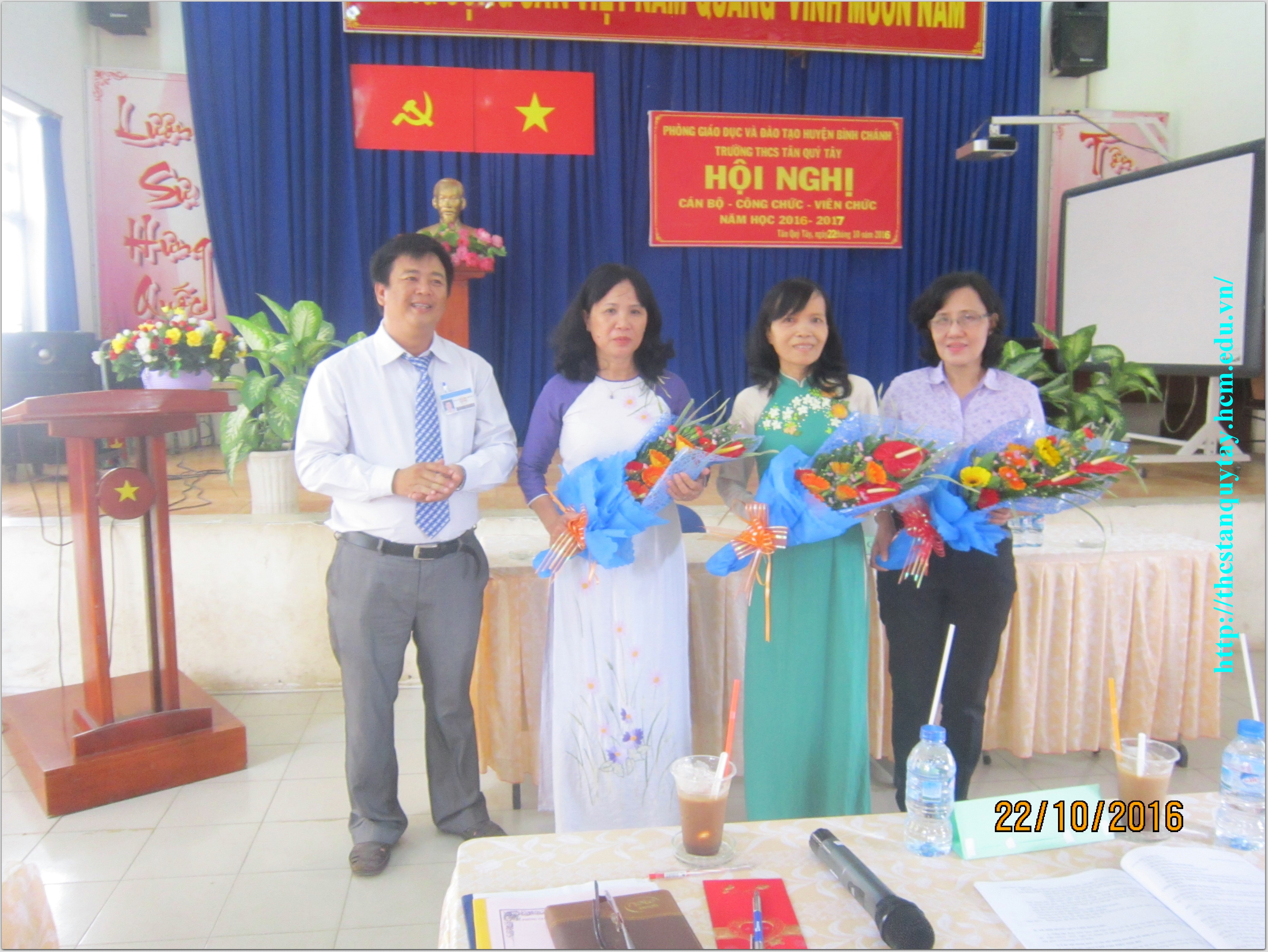Tặng hoa chúc mừng cho BGH và nữ đại biểu dự hội nghị nhân ngày 20/10.